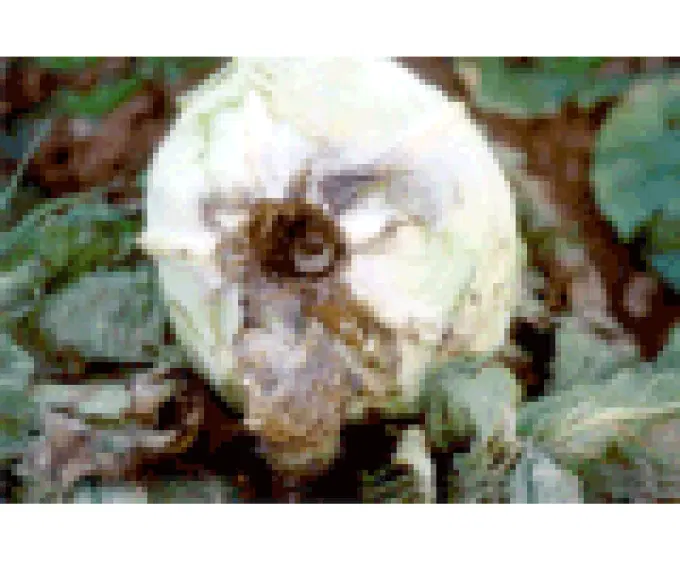 Bệnh thường xuất hiện sau khi bắp cải đã cuốn, gây hại từ đầu bắp lan dần xuống phía dưới hoặc từ gốc phát triển lên trên.