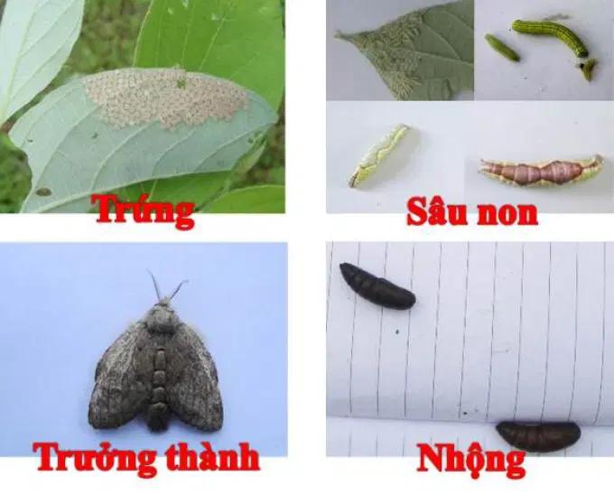 sau lá bồ đề. Sâu non màu xanh có 4 tuổi, tuổi 1 sống