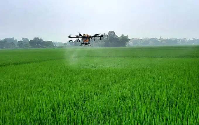 Ảnh: Sử dụng thiết bị bay phun thuốc bảo vệ thực vật