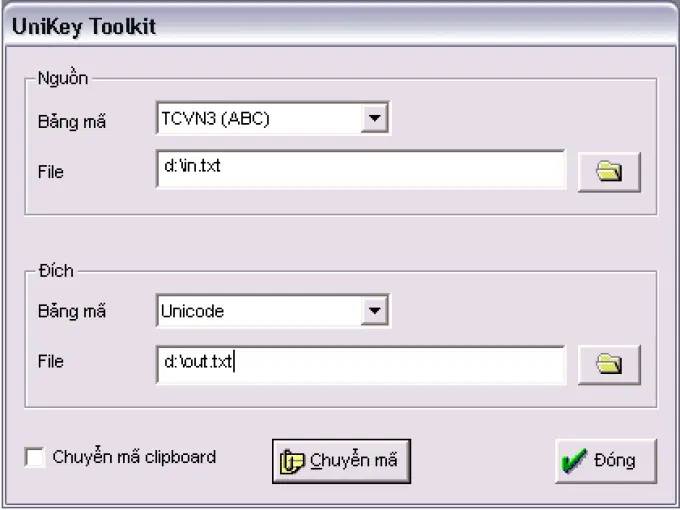 UniKey hỗ trợ chuyển mã tiếng Việt trong file text hoặc trong clipboard.