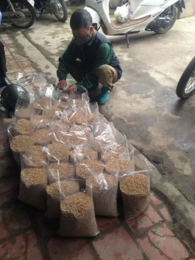 chuột được chia thành các túi nhỏ 2 kg để cấp phát tới các khu dân cư