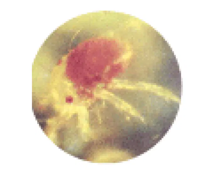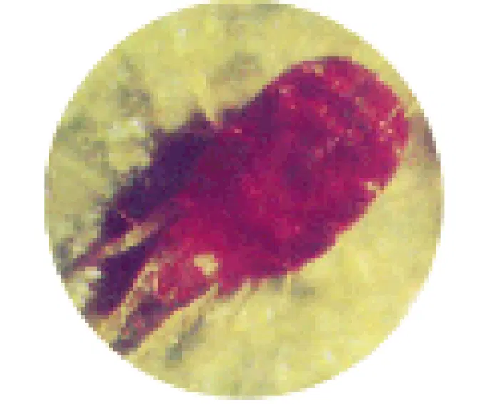có màu đỏ hồng hay đỏ nhạt, con cái thân hình gần tròn, con đực thân thuôn hơn, có 8 chân, thân dài khoảng 0,3 - 0,5 mm, bề ngang khoảng 0,2 - 0,4 mm.